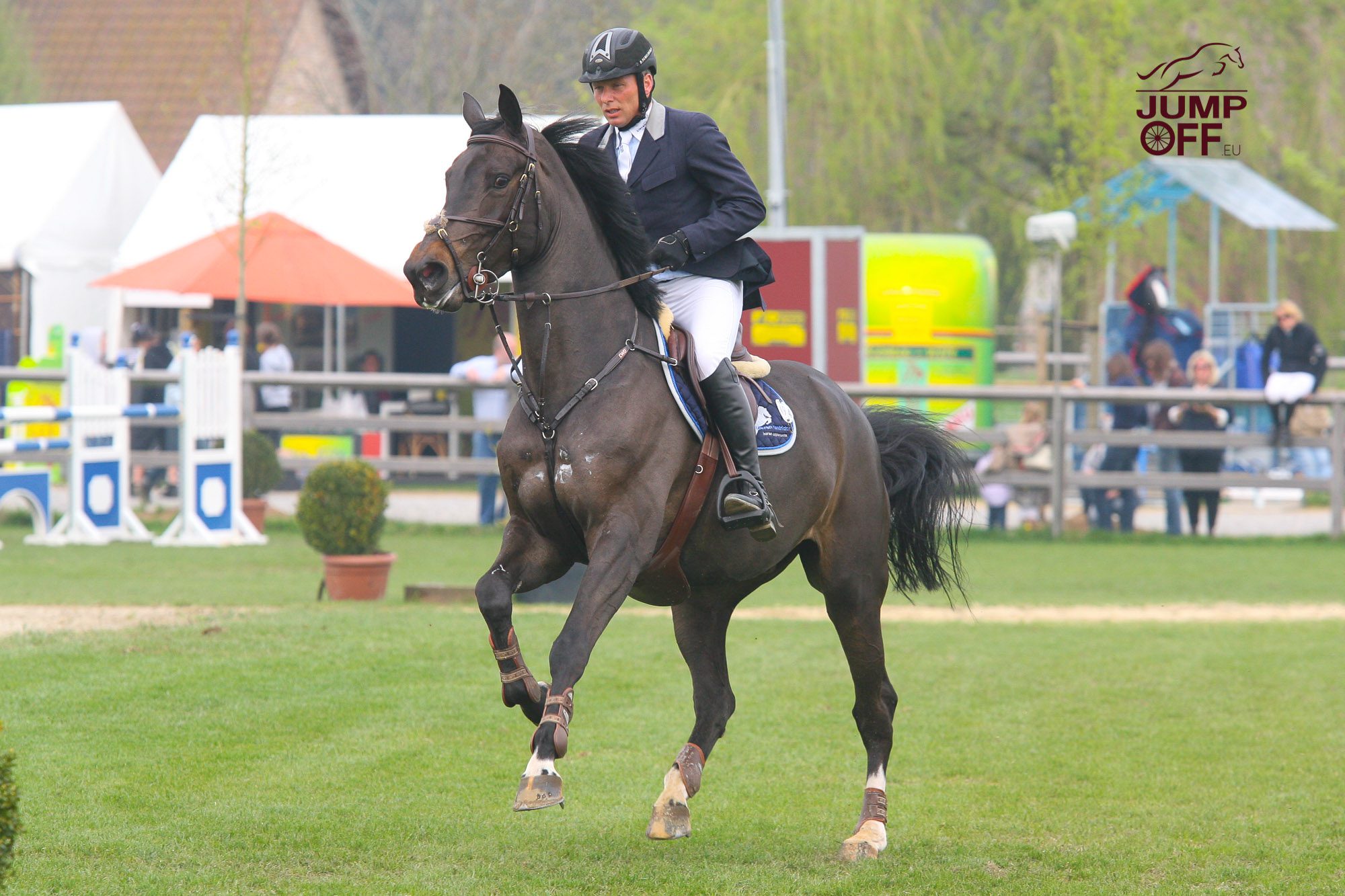 « Cette victoire, elle arrive au bon moment. Cela fait vraiment plaisir même si je reste réaliste et qu’il y a encore des choses que je veux améliorer au barrage. Je n’ai pas fait suffisamment de concours cette année. Je pense que nous avons fait un concours par mois. Certes, j’ai l’expérience mais je ne suis pas dans le rythme. Du coup, je fais des erreurs, je réagis trop tard. J’aime toujours être au concours … mais je dois bien avouer aussi que partir au concours est parfois plus difficile, je sais que cela va être encore plusieurs jours partis de la maison … et parfois, je me demande si je vais continuer ou pas de monter. Mais si je monte encore aujourd’hui, c’est grâce à Côte d’Or. Je suis monté dessus la première fois alors qu’il avait trois ans et demi … et j’ai dit à ma femme « celui-là, il n’y a personne d’autre qui va le monter ! » Je pense vraiment que je n’ai plus eu une connexion aussi forte avec un cheval depuis Clinton. A trois ans et demi, dans mon manège, il était capable de faire des choses que j’ai difficile de faire avec des chevaux de 9 ans.