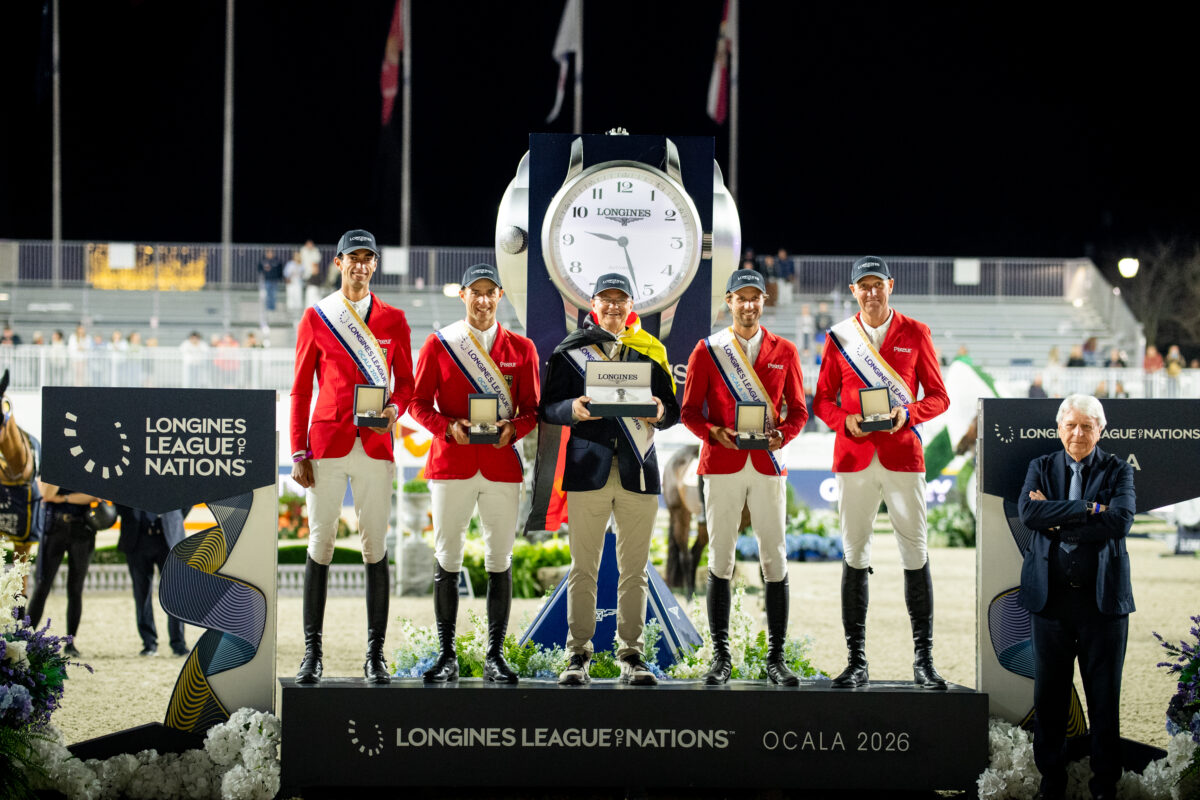 La deuxième étape de la Ligue des Nations a sacré cette nuit l’équipe allemande composée d’Andre Thieme, Christian Kukuk, Richard Vogel et Rene Dittmer. Alors que l’Allemagne s’était déjà classée deuxième à Abu Dhabi à l’occasion de la première étape du circuit, l’équipe d’Otto Becker n’a cette fois-ci pas laissé sa place et est montée sur la plus haute marche du podium. Alors qu’ils s’élançaient en seconde manche avec un score de 4 points, les trois cavaliers choisis pour repartir ont su rectifier le tir en s’assurant la victoire grâce à trois parcours parfaits.