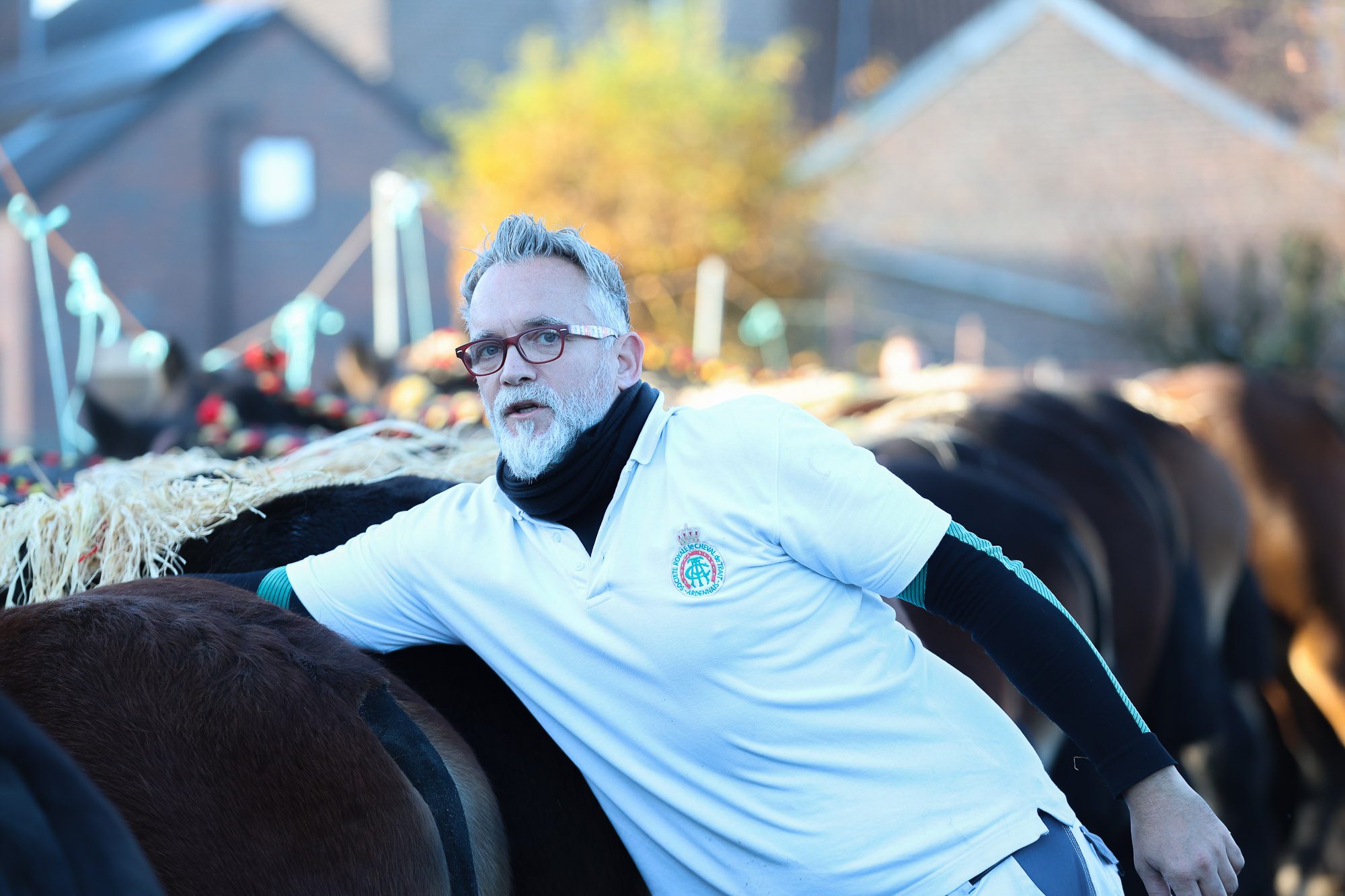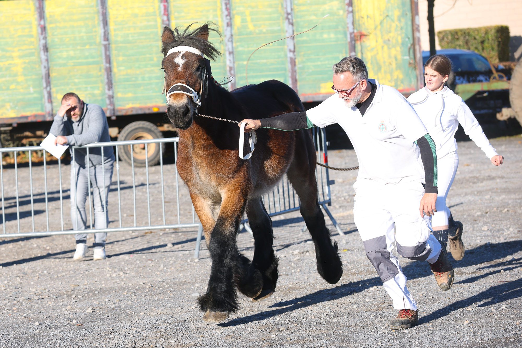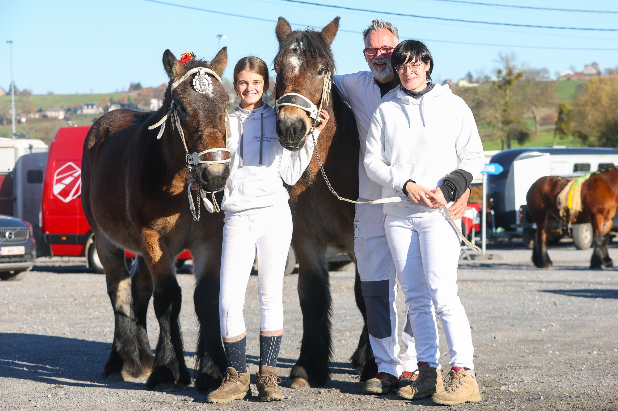 Vincent Vanvinckenroye : « Parmi les éleveurs présents, J’ai emmené 17 chevaux ici à Aubel sur un total de 69 chevaux que compte notre élevage. J’élève des chevaux de trait ardennais par passion, c’est un hobby. Mon papa élevait entre cinq et dix chevaux … puis quand j’ai commencé à élever, j’avais une idée très précise de ce que je voulais comme modèle et comme couleur. J’ai donc dû agrandir l’élevage pour y arriver. La chance que j’ai, c’est que nous avions deux fermes. Je suis donc parti dans un gros modèle d’élevage. J’ai eu la chance d’avoir de bonnes juments et de bons étalons. C’est un bonheur que je partage avec ma femme et ma fille qui, à 13 ans, élève désormais elle-même ses propres chevaux même si elle est également passionnée de saut d’obstacles et qu’il est possible que nous nous orientions également dans cette voie, comme mon cousin Paul Vanvinckenroye qui élève sous l’affixe « de la croix renard ».