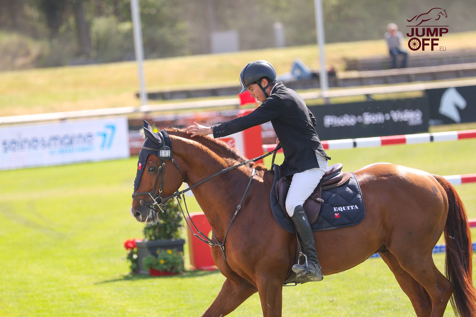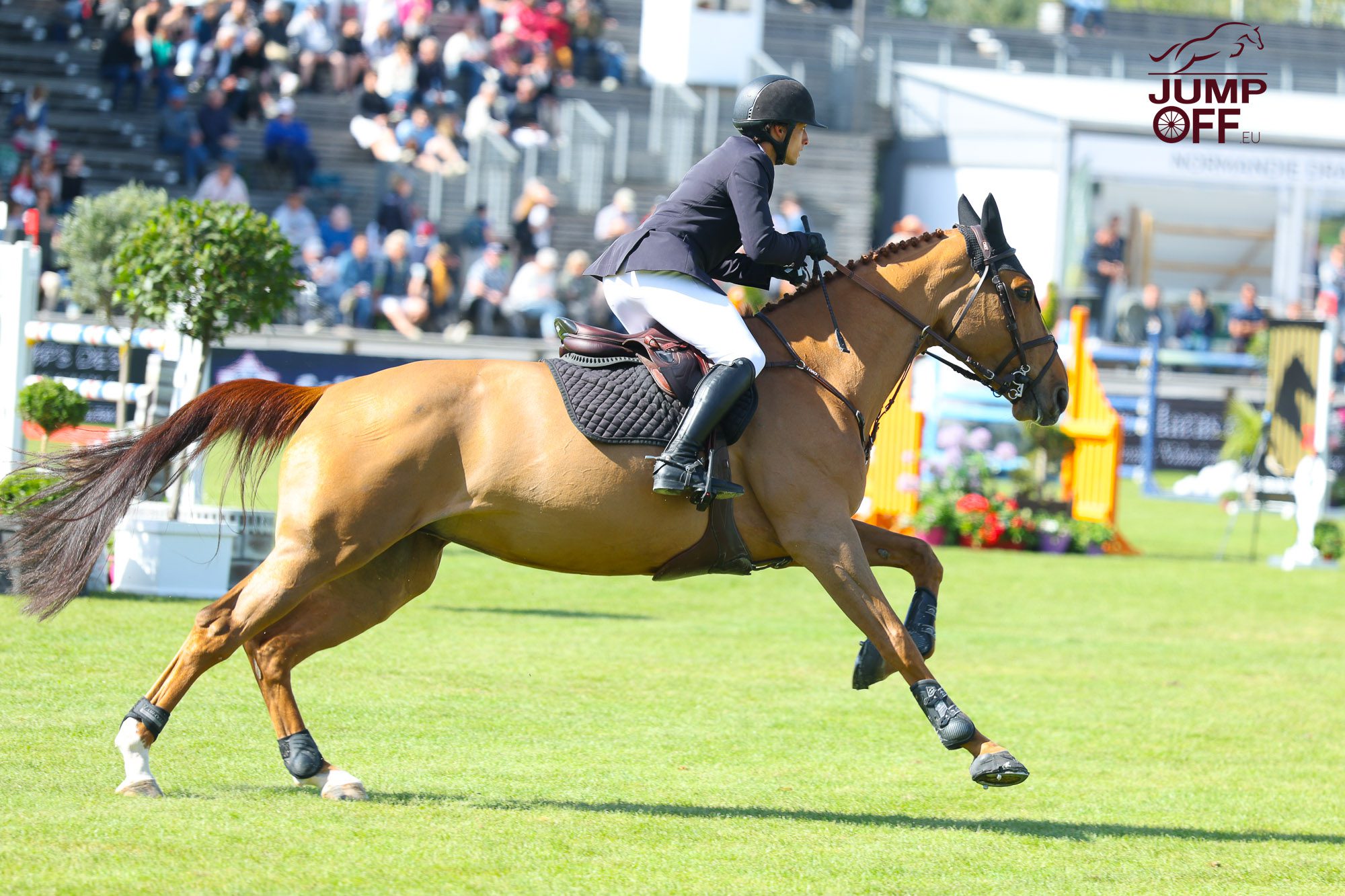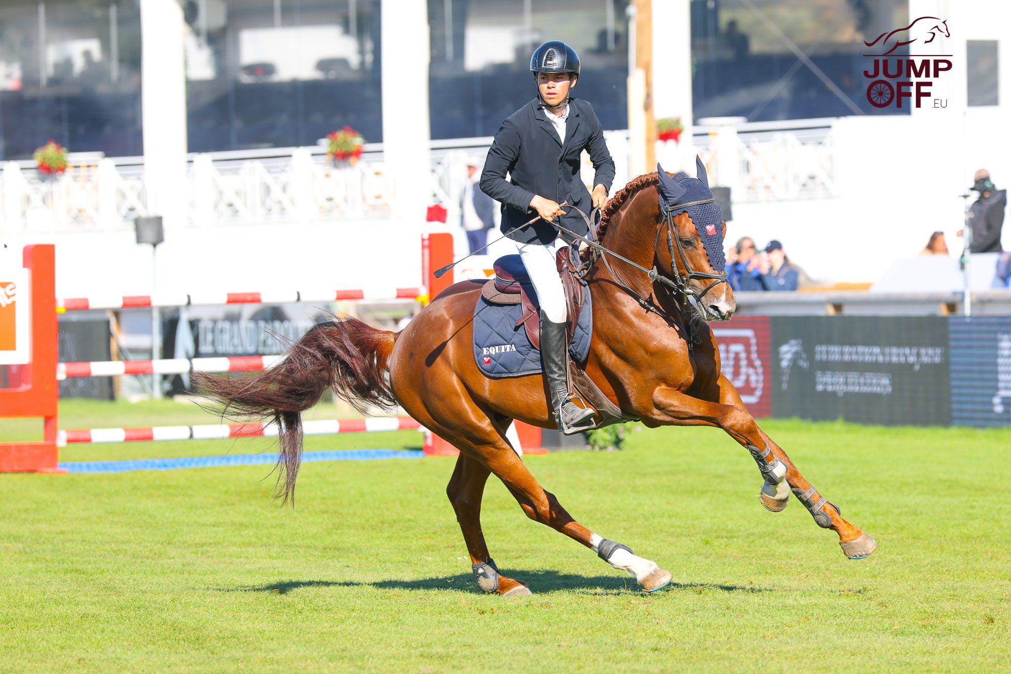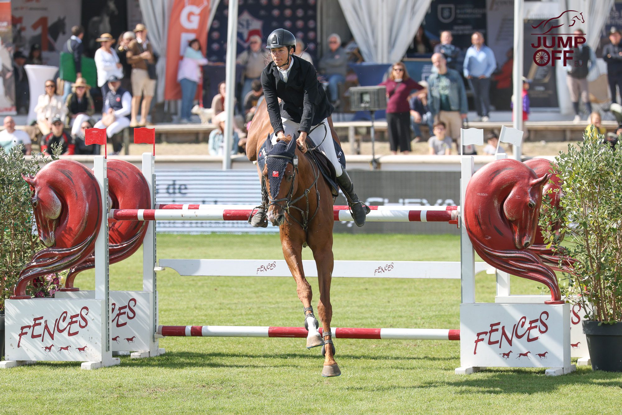 « Cette victoire est vraiment inattendue. Le cheval a juste fait un Grand Prix des 7 ans dans un CSI puis un dans un Grand National … et surtout, c’est la toute première fois de sa vie qu’il saute sur l’herbe ! Il a sauté fantastique tout le week-end. Il n’aura pas touché une barre et il finit par une victoire, c’est incroyable. Maintenant, vu sa performance aujourd’hui, nous allons essayer d’être régulier toute la saison et je pense que maintenant, la finale du championnat de France des 7 ans peut être un objectif. Je le monte depuis ses 5 ans. Il appartient à Jean-Baptiste Llanas, qui est le meilleur ami de mon papa et qui l’a acheté lorsqu’il avait trois ans aux ventes Fences pour sa fille … mais comme elle est encore un peu jeune, il me l’a confié.